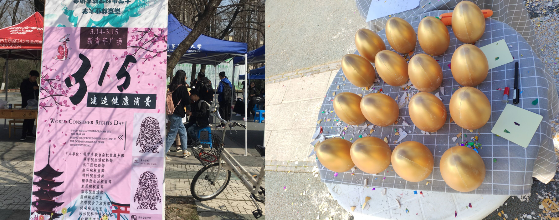 3月15日,公司员工会生活权益部联合校员工联合会权益服务部、各兄弟学院生活部,以“普及消费法律知识,加强权益保护意识”为主题,在新青年广场开展了“315”普法宣传活动。