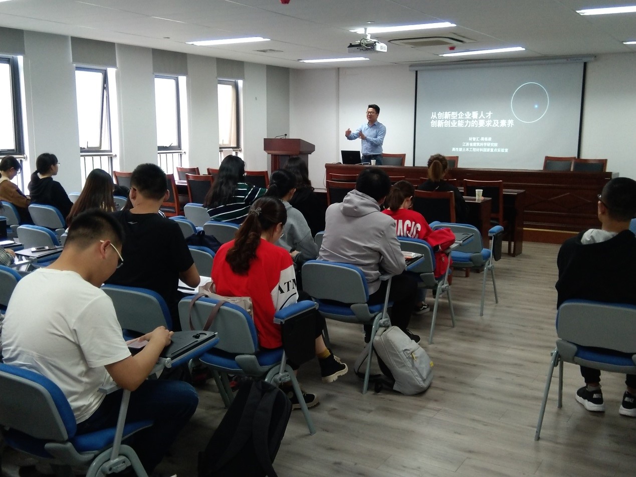 4月24日下午,公司老员工创新创业经验交流会在学院报告厅举行。公司老员工创新创业导师、江苏博特新材料有限公司总经理周栋梁参加此次交流会,就个人成长、创业知识、综合素质等方面与2018级的同学们进行了分享与交流。公司党委副书记、副经理姜琪参加会议,会议由院学工办主任尹吴主持。