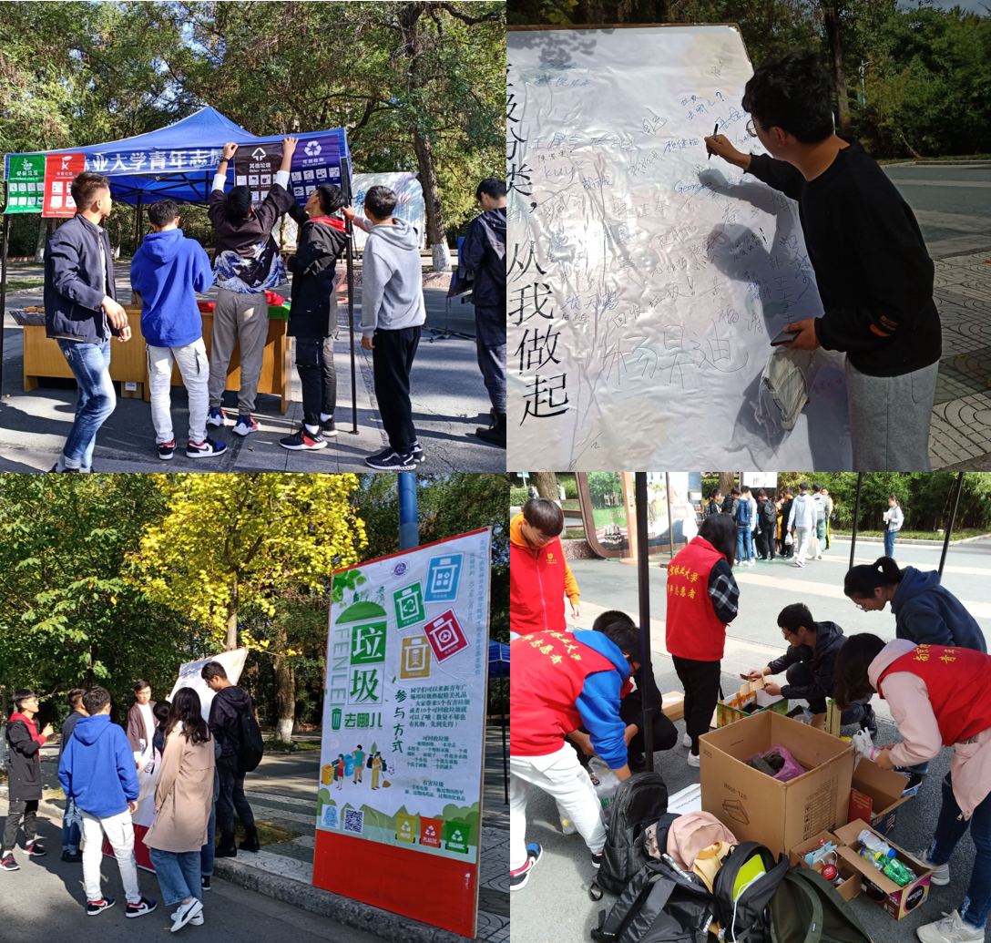 随着生态文明建设的持续推进,垃圾分类逐步进入了公众的视线,分辨垃圾的种类成为了大家困恼的问题之一。活动当天,志愿者满怀热情地投身到活动中,分工协作、各司其职,有的负责分类垃圾,有的负责发放小纪念品,有的负责宣传垃圾分类知识,有的负责引导展板签字。参与者的热情高涨,很多同学对“垃圾去哪儿”很感兴趣,积极参与活动。志愿者们以图文并茂的形式向参与者介绍了垃圾分类的意义、模式及常见的垃圾分类标识等基本知识。参与者们不断送来可回收垃圾,积极学习垃圾分类概念,增强垃圾分类意识和生态环保理念。活动结束后,志愿者将垃圾分类整理,统一送至垃圾回收站进行集中回收。