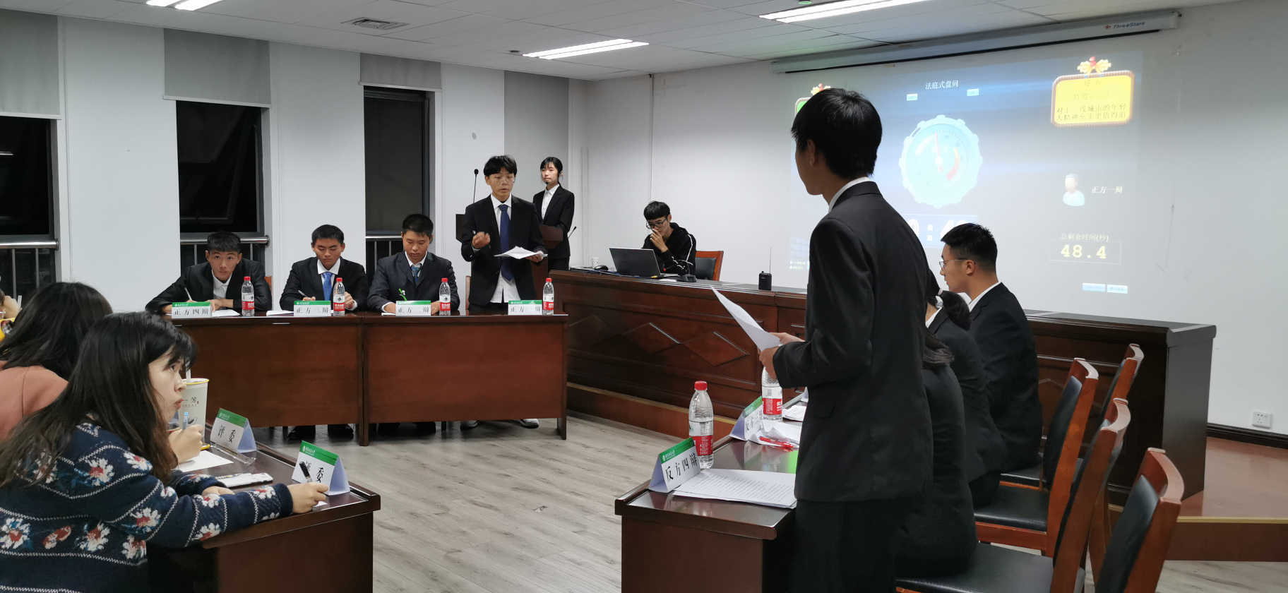 此次“新生杯”辩论赛共有6个班级参赛,经过初赛和复赛的8场比拼,积分最高的两支队伍入围决赛,分别是来自1911012班的“特邀嘉宾”和来自1911021班的“明理好辩”。决赛的辩题是“对于一线城市的年轻人,物质/精神充实更值得追求”。