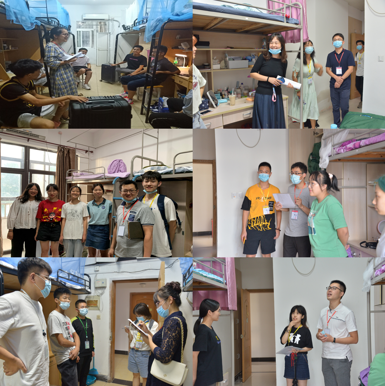 今年是特殊的一年,由于疫情防控家长不得入校,新生从走入校门起便脱离了父母的陪伴,尤为需要老师与学长学姐的帮助与关怀。各位老师在宿舍与新生深入交流,向新生表达问候,帮助新生尽快适应老员工活。尹吴书记特别叮嘱各位新生注意保重身体,强调了校纪校规,并祝愿大家能愉快地度过接下来的军训时光。