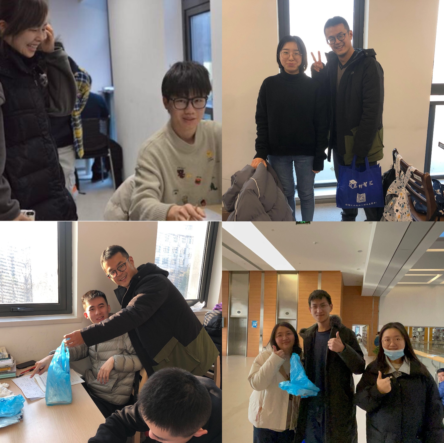老师和员工干部们悄声进入图书馆和宿舍,走到埋头苦读的考研学子身边,为他们送上一份份考研加油包。老师们叮嘱大家不忘初心、坚持到底、放平心态、稳扎稳打,同时注意保暖,争取以最佳状态迎接考试。考研加油包是员工会的学弟学妹们精心准备的“考研神器”,包括防寒保暖的暖身帖和笔笔用心的祝福卡片。一份份加油包,装满了学院对考研学子的祝愿与鼓励,充满了暖暖爱意。