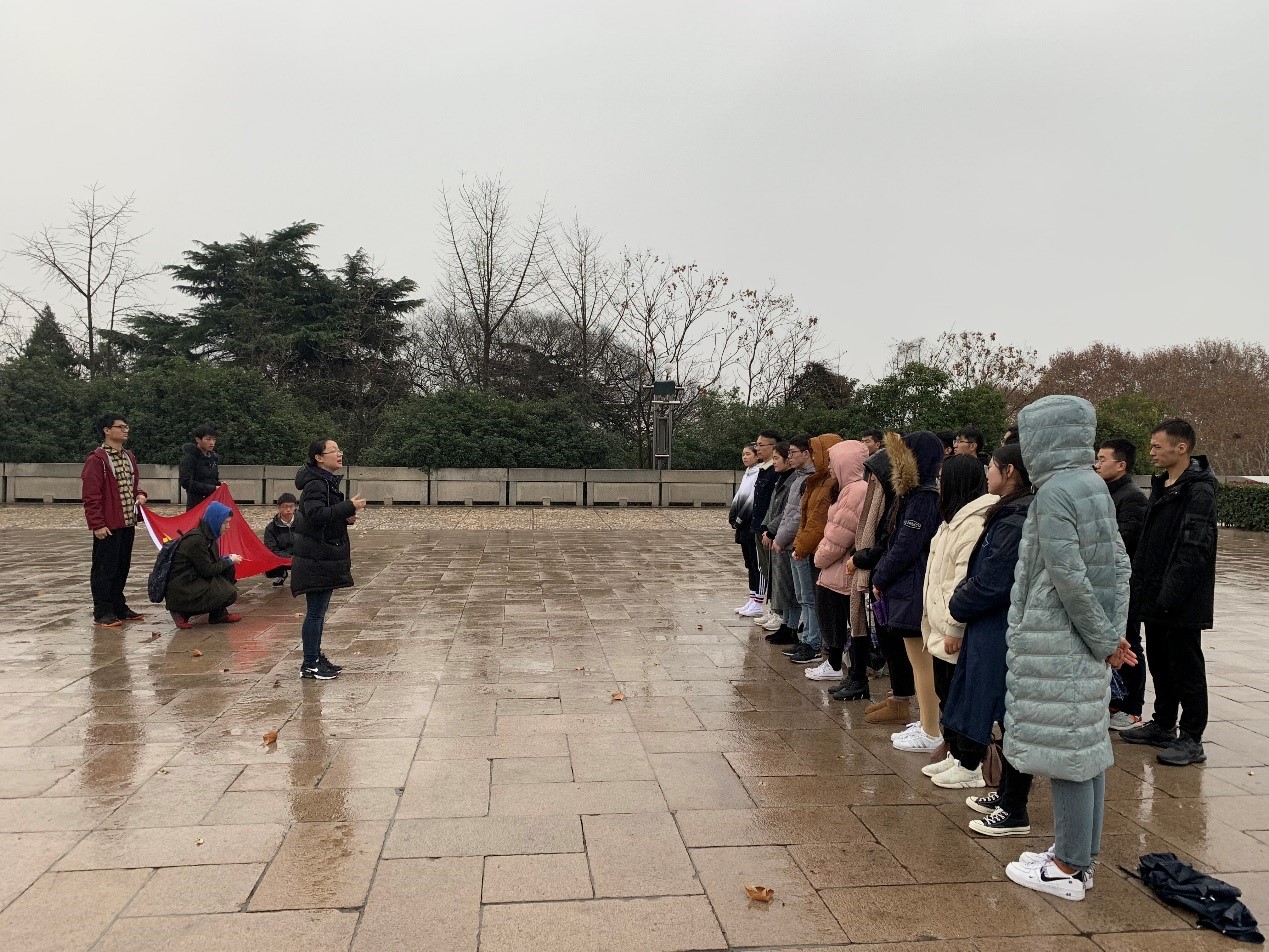冬日里的绵绵细雨凸显了雨花台烈士陵园的庄严与肃穆。在革命烈士纪念碑前,姜琪带领全体新党员列队肃立,面向党旗,举起右手,以铮铮誓言做出共产党员的郑重承诺,铿锵有力的誓词回荡在陵园上空。党员们心潮澎湃的同时也进一步意识到肩上的责任和义务。宣誓之后,全体党员怀着敬重和景仰的心情,默默注视着纪念碑,对革命先烈们寄予无限的哀思。