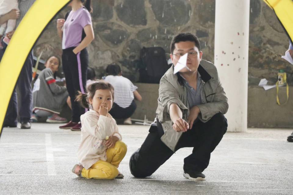 现场最热闹的当属亲子赛环节。印有党的几次重要会议时间和内容的红色纸飞机在父母与子女间抛接,象征着信念在两辈人之间传递。“子女学校也在教四史,但以这种方式科普党史,新颖直观不枯燥,小孩有兴趣,也更容易接受熏陶。”参与亲子赛的黄老师说道。“这是南林大第一次将科技创新融入到纸飞机大赛的尝试,意在用贴近生活的方式,让同学们参与到党史学习中来。”航模协会会长吴宸介绍道。