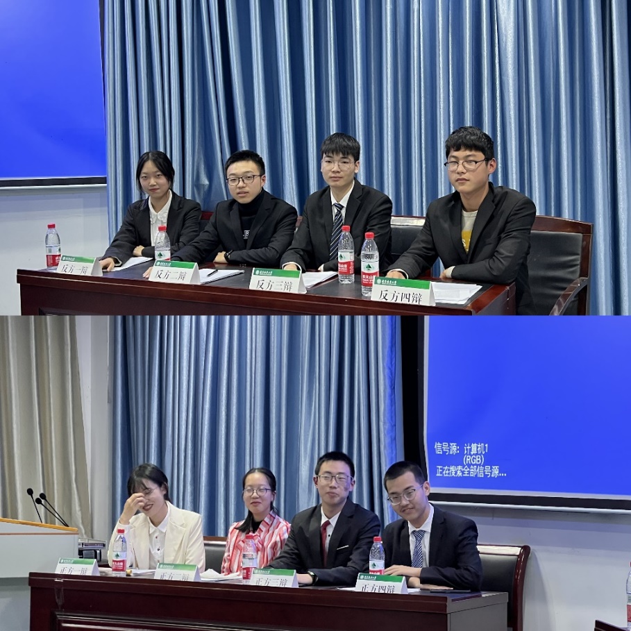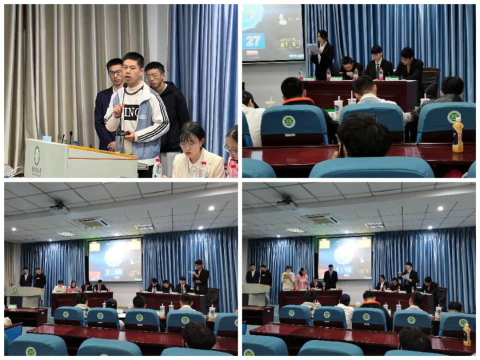 英雄威,风凛凛,文章腹,千机言。本次辩论赛辩题为“对后浪而言胜人更重要还是胜己更重要”,正反两方分别为材料104班和材料102班辩手,他们分别是正方:李美慧、贾雨琪、刘明、闫博凯;反方:王皓昱、黄杰、何洪辉、陆龙。正方就论题提出,胜人能够促使社会人才涌现,推动社会发展,促进社会良性竞争。反方则用当今社会热门现象“内卷”来驳斥胜人之论,紧扣时事热点,论证胜己重于胜人。一人之辩重于九鼎之宝,三寸之舌强于百万之师。双方辩手你攻我守,相互辩驳,言辞犀利,字字珠玑,思想的碰撞、智慧的凝聚在一瞬间激发,引得场下掌声雷动,好不精彩。最终反方凭借更充实有力的论证和更强的逻辑思维能力取得胜利。