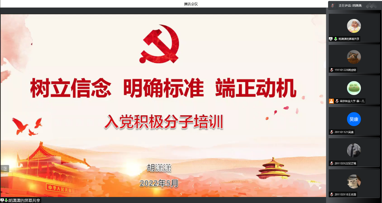 5月7日下午,党委组织部正科级秘书胡潇潇老师进行了题为"树立信念、明确标准、端正动机"的第二次专题讲座。胡老师向学员们详细介绍了入党的基本条件、基本流程,并带领大家一起学习了党章中关于入党的相关规定。她强调,提升思想认识是终生过程,要始终把思想建设放在首位,希望学员们树立正确的入党动机,积极参加党的实践活动,严以律己,不断提高个人思想政治素质,不仅要在组织上入党,更要在思想上真正入党。