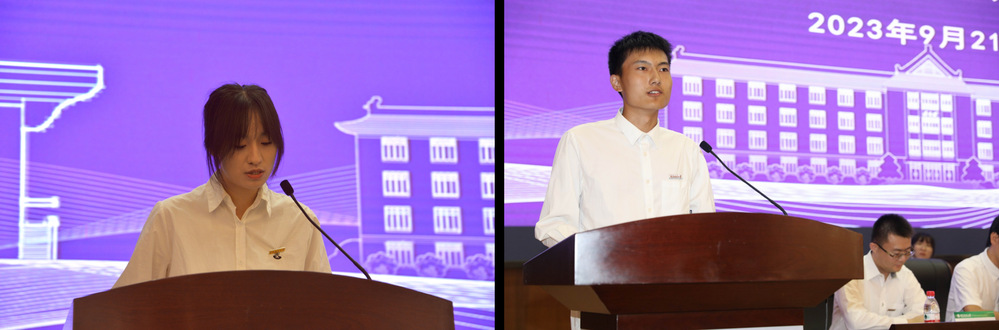 “南林催我同奋进,我与理学共成长。”研究生在校生代表、研究生会主席易招娣和本科生在校生代表、员工会主席王星锐先后发言。他们鼓励新生们要珍惜大学时光,积极投身实践活动,努力丰富人生体验,并期待与新生们一起踔厉奋发,勇毅前行。