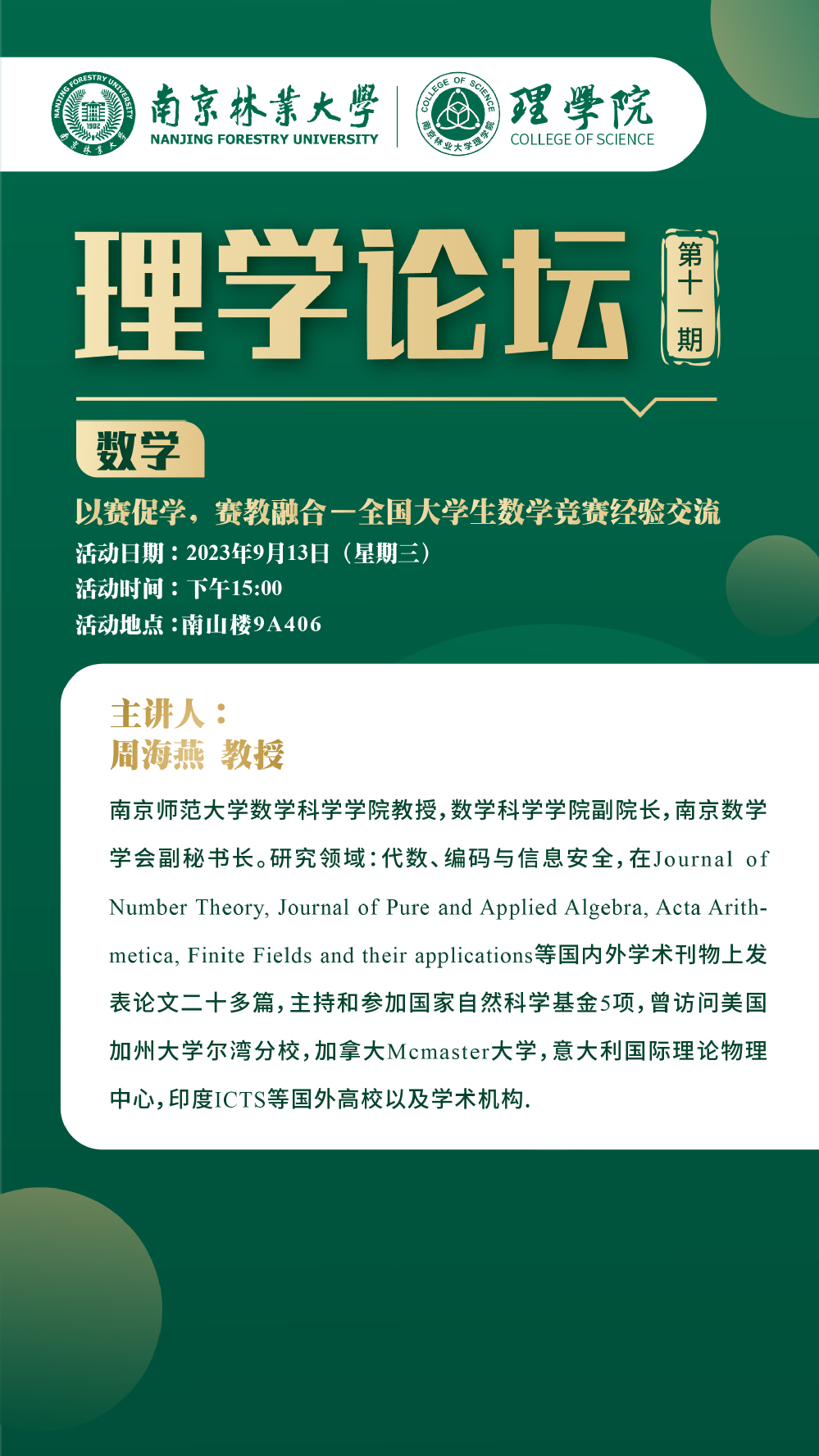 理学论坛第十一期:周海燕教授(南京师范大学)