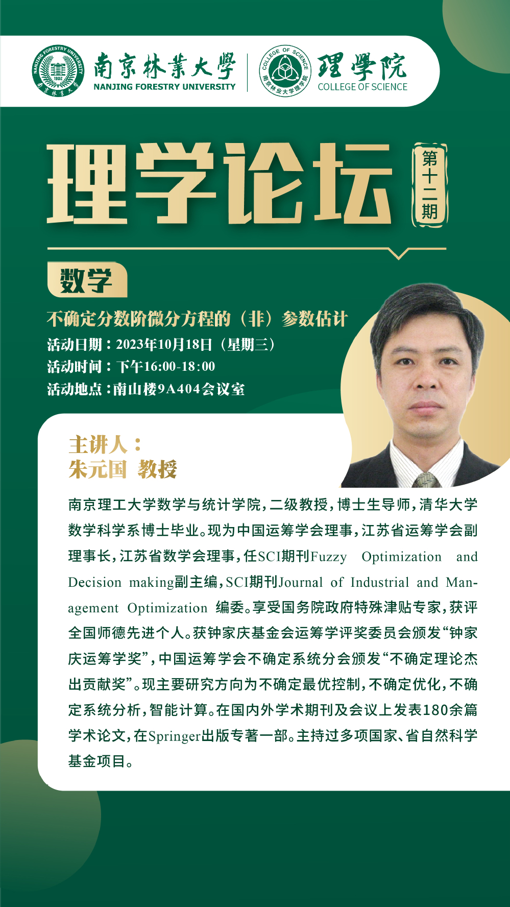 理学论坛第十二期:朱元国教授(南京理工大学)