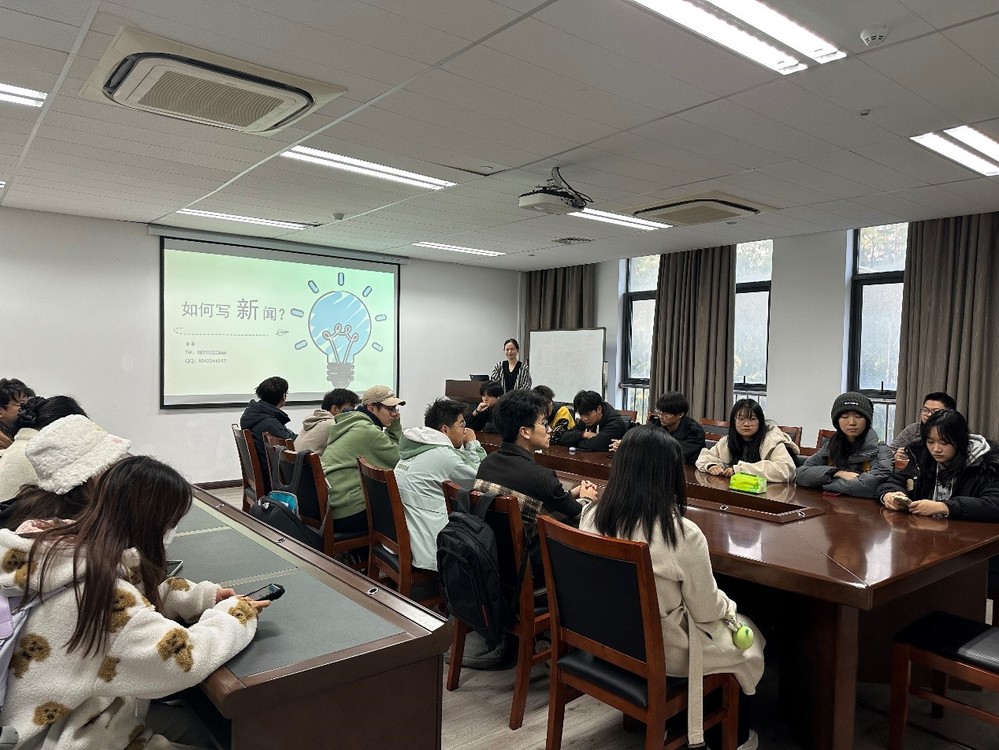 雷老师围绕“如何写新闻”的主题,对新闻写作的意义、基本要素和原则展开了阐述。雷老师指出基本要素和结构是新闻写作的重点,并以学校网站上的部分新闻稿为例,从标题、导语、主体、结语和背景五个方面系统介绍了如何去完成一篇内容详实、重点突出的新闻稿。她表示新闻撰写过程中要秉持公正的立场,切忌抒情感、写空话、下结论。
