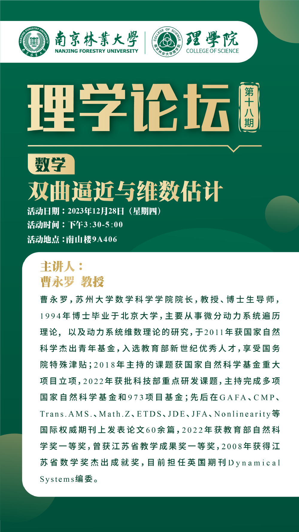 理学论坛第十八期:曹永罗教授(苏州大学)