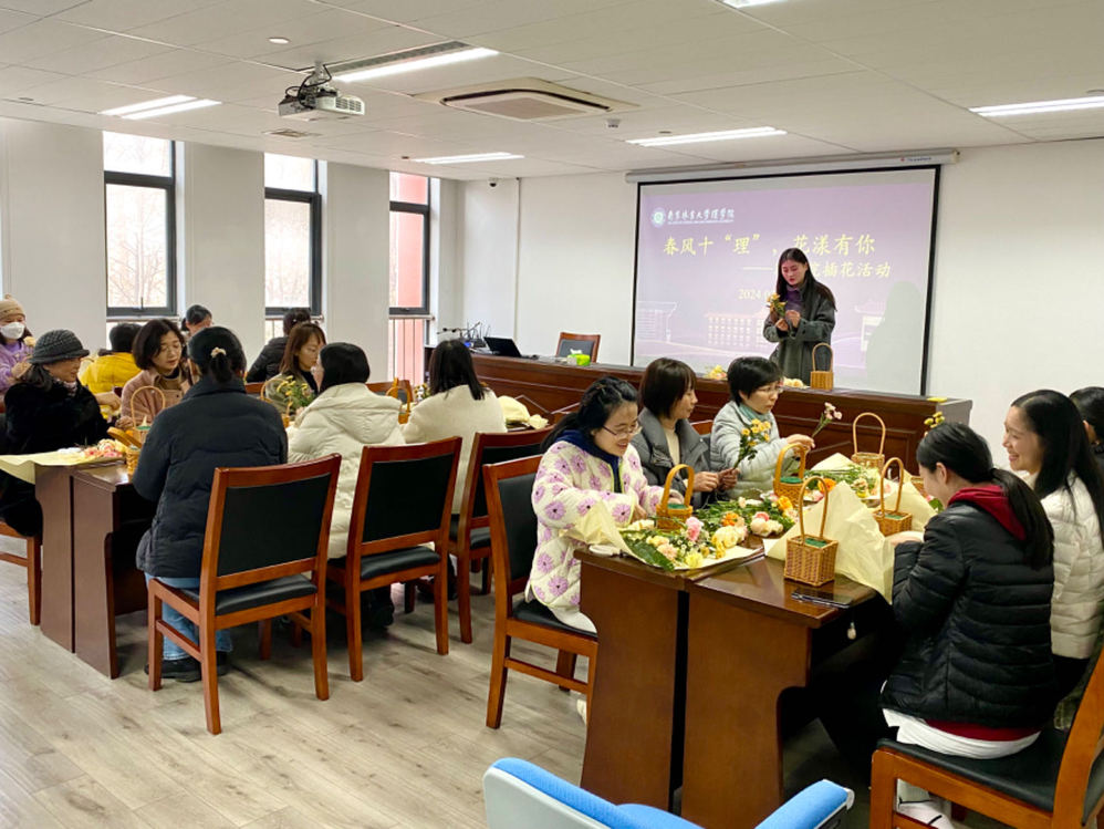 为展现新时代女性积极阳光的精神面貌,营造浓厚节日氛围,在“三八”国际劳动妇女节来临之际,betway88西汉姆联工会组织开展了“春风十‘理’,花漾有你”插花活动。