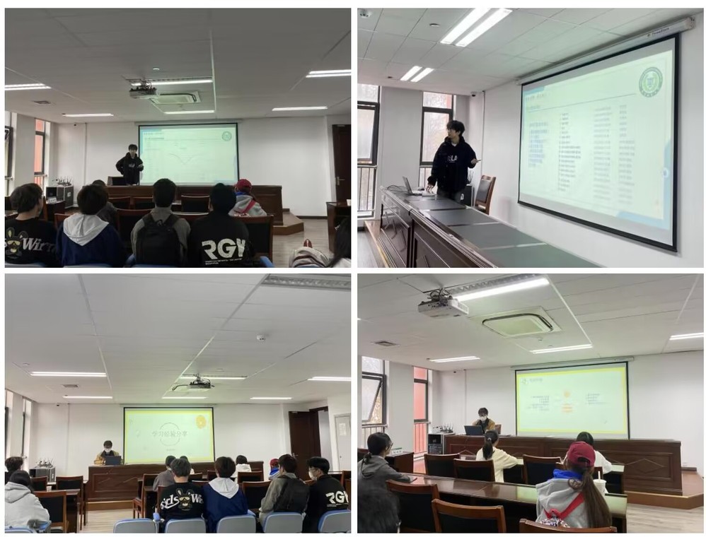 会上,王路荆同学分享了自己在大学中的学习经验,讲述了自己保研到清华大学的心路历程。廖光宇然同学针对信息与计算科学的低年级员工具体分享了专业主干课程的学习方法,并介绍了自己推免过程中了解到的院校情况。在自由提问环节,面对同学们提出的学习困惑与专业发展问题,两位同学也认真做出了回答。