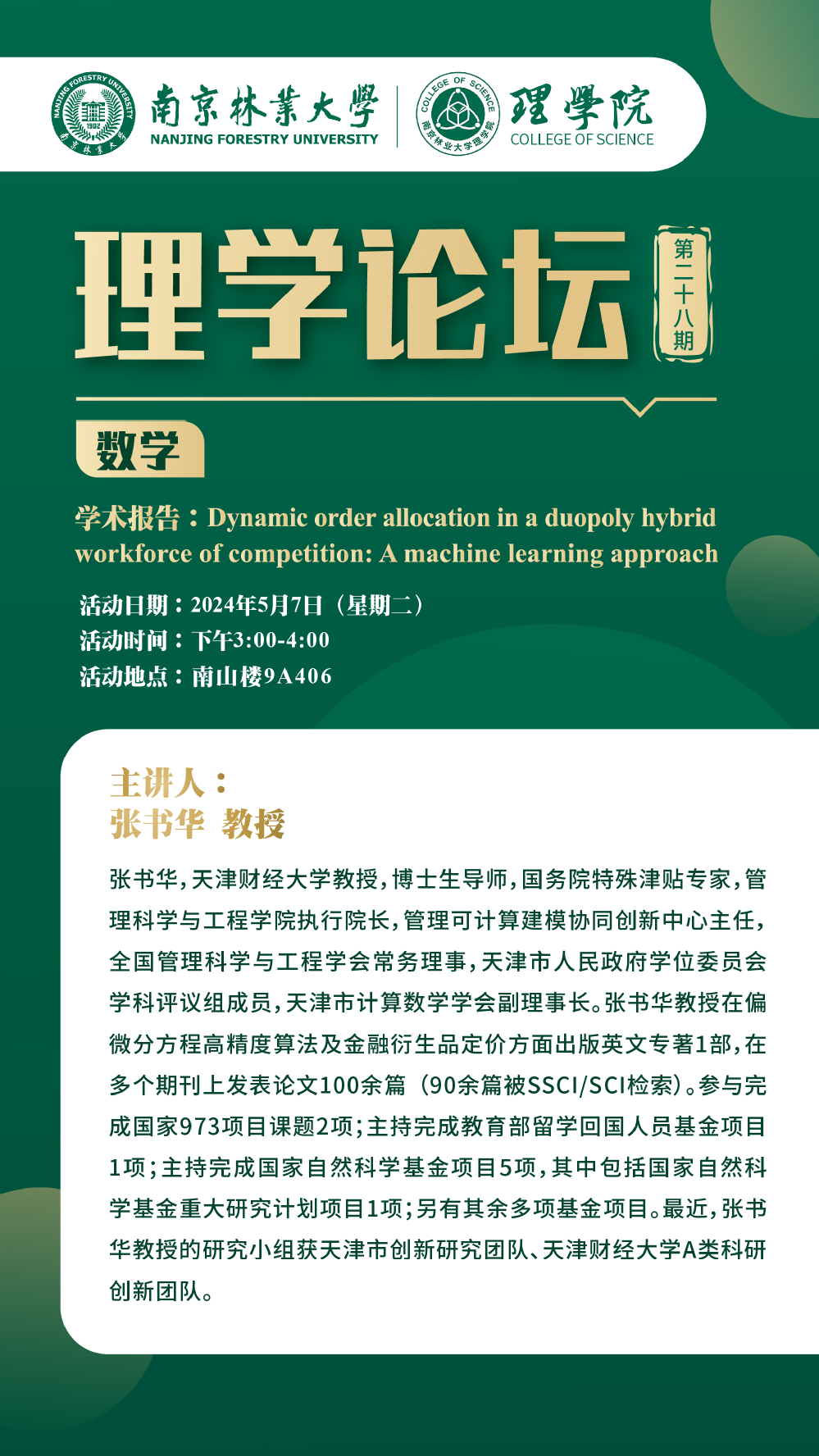 理学论坛第二十八期:张书华教授(天津财经大学)
