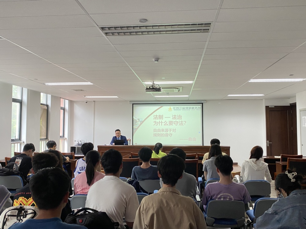 首先,魏嘉均律师向在座师生阐释了“法制”和“法治”的区别,以及“为什么要守法”。其次,魏嘉均律师在讲座中结合一系列贴近生活的案例,通过以案说“法”、以案释“典”的方式,生动地为师生讲解了“三大法律责任”、“刑事法律责任”。并就如何加强对违法行为的自我防护给出了三点建议:一是遵守法律及社会规范,养成良好习惯;二是增强辨别是非,自我保护的能力;三是用法律维护自身合法权益。