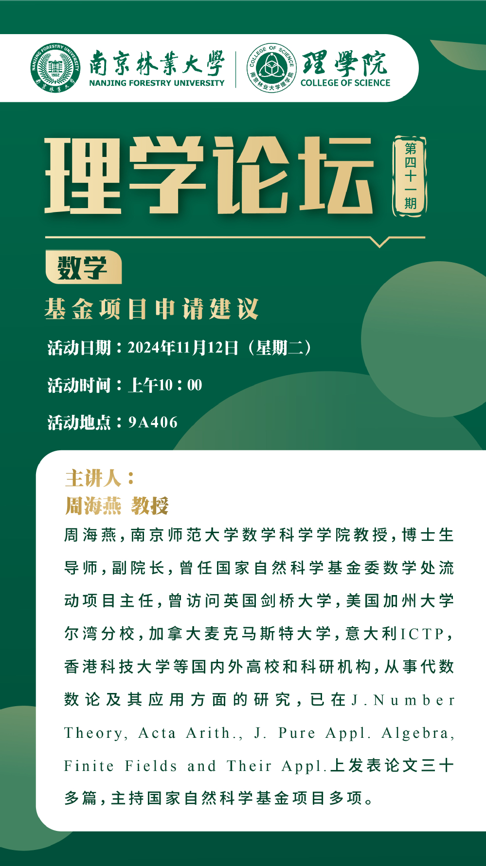 理学论坛第四十一期:周海燕教授(南京师范大学)