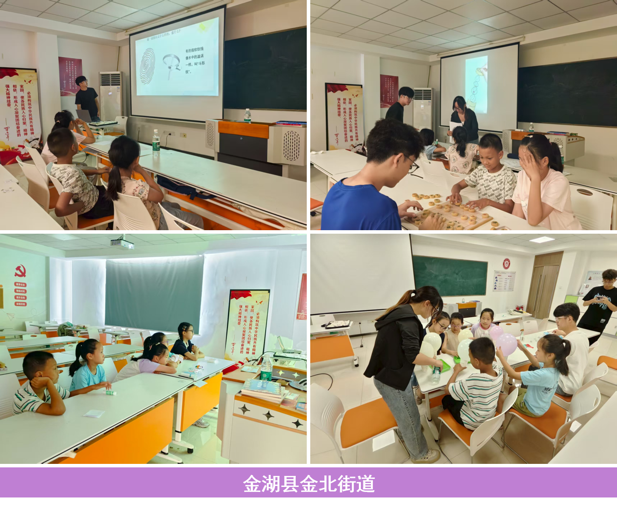 “理韵星河”社会实践团由学院20名优秀在校生组建而成,包括4名中共党员、12名共青团员。依托党团联动,重点面向暑期看护有困难的留守儿童、流动儿童、新业态新就业群体子女等青少年, 提供思想引导、心理疏导、生活指导等关爱服务活动,让困境青少年心有所“暑”、不负所“托”,全力托起“安心一夏”。2025年betway88西汉姆联在金湖县的“爱心暑托班”服务点设立塔集镇、金南镇、银涂镇、前锋镇、戴楼街道、金北街道、平安路街道、宋坝桥街道等8个点位。依托校地协作、双向赋能,有力搭建了“大手拉小手”的爱心矩阵,累计服务100余名困境青少年,一定程度缓解了人民群众急难愁盼的 “暑期看护难”问题。