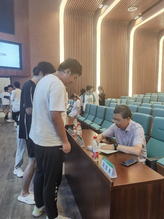 报告结束后,谢教授走下台来,与在场师生亲切交流与互动。同学们询问了许多与数模相关的问题,谢教授都耐心地一一解答。不少同学拿出谢教授主编的《数学模型》请他签名。