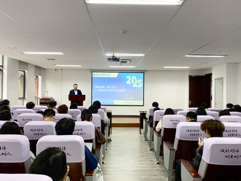 分享环节,余旺旺教授以“规划未来,始于足下”为核心,结合自身从员工到教授、从科研到管理的跨界成长历程,为同学们带来一堂兼具温度与深度的“生涯规划课”。他深情回顾在母校的求学时光,强调“大学每一步的扎实规划,都是未来前行的底气”,并围绕“扎根”“破茧”“眺望”“续航”“感恩”五个关键词,拆解生涯成长的核心逻辑:“扎根”是沉下心积累学识,搭建完整知识体系,找准专业深耕方向;“破茧”是主动跳出舒适区,在实践与挑战中认清自身潜力与边界;“眺望”是立足长远视野,将个人小目标嵌入时代发展大格局;“续航”是珍惜校园学习契机,培养终身学习的核心能力;“感恩”是铭记师恩、携手良友,在机遇来临时能厚积薄发。他以自身经历生动诠释“规划先行,行则将至”的人生信条,鼓励同学们“用今日的清晰规划,筑牢明日的成长基石”,话语间满是真诚与期许。