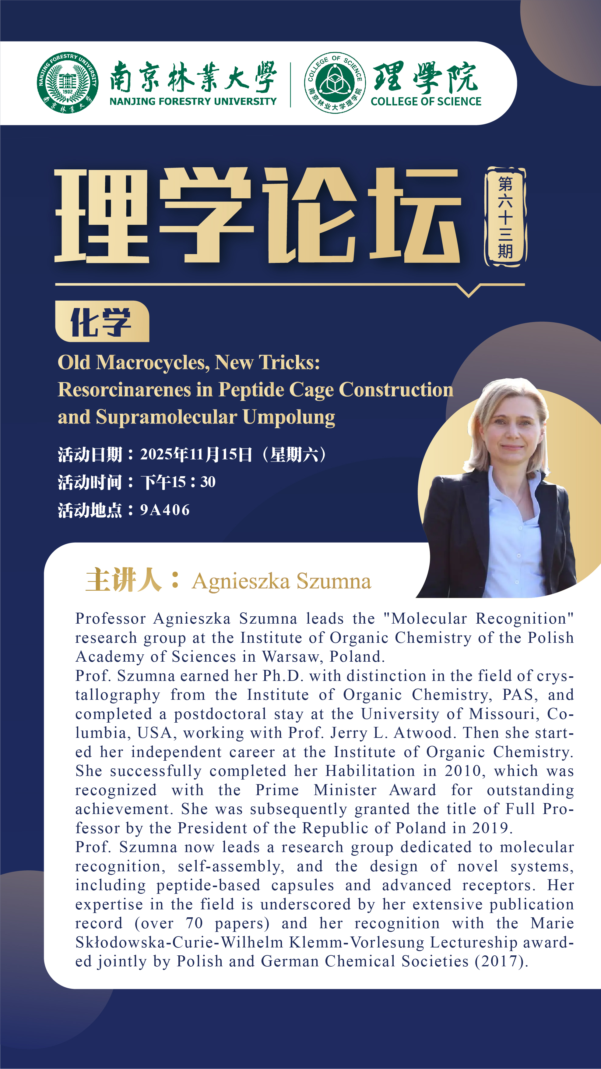 理学论坛第六十三期:Agnieszka Szumna(波兰科学院有机化学研究所)
