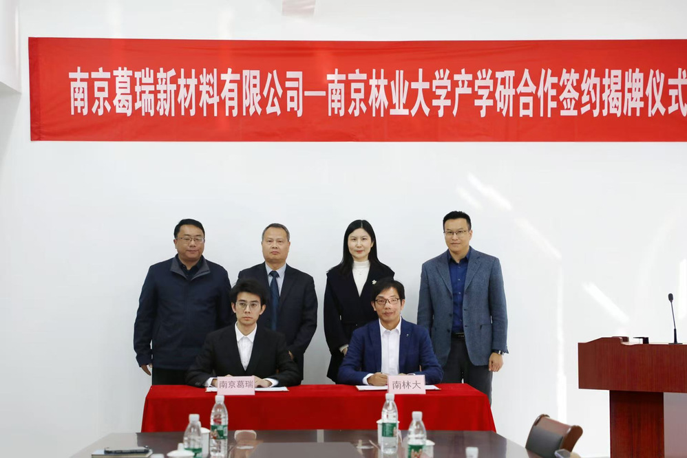11月28日,公司与南京葛瑞新材料有限公司的产学研合作签约暨揭牌仪式在该公司举行。江北新区智能制造产业发展党工委副书记、纪工委书记王克龙,葛瑞公司总经理兰文斌、副经理朱敏、经理助理李格非等出席仪式。