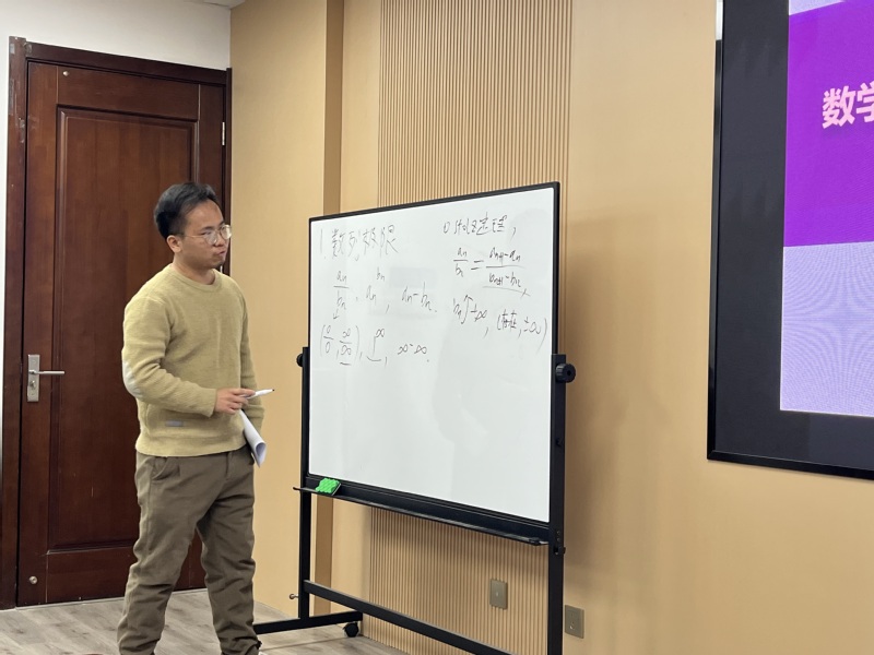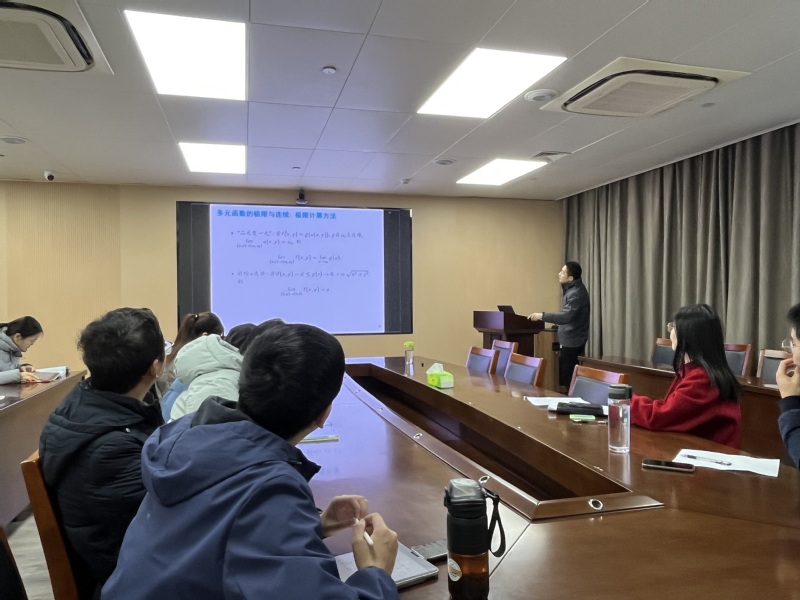 活动于每周四上午9点开始,每次安排两位教师围绕竞赛与考研热点专题进行分享。陈磊老师就微分中值定理在竞赛与考研中的高频考点、分值分布等进行统计,系统梳理了各类中值点存在性证明的题型与方法;李赛老师以极限计算为主题,结合科研经验重点介绍了估阶方法在复杂极限问题中的运用;魏伟老师系统总结了一元函数连续性相关理论,并借助典型真题展示了如何利用单调性证明连续性;王怡与李云老师结合竞赛真题,全面阐述了一元函数求导与空间解析几何的常见题型与解题体系;冯梦雅老师围绕导数应用,深入探讨了利用单调性证明不等式的难点与处理策略;张云秀老师针对一元函数积分学,结合真题剖析了换元法与分部积分法的关键难点,尤其对分拆被积函数及隐函数积分中的换元技巧进行了探讨;吴景鹏老师则从数学分析教学与竞赛培训出发,通过解析北大等高校考研试题,梳理了多元函数极限与连续等核心知识点。