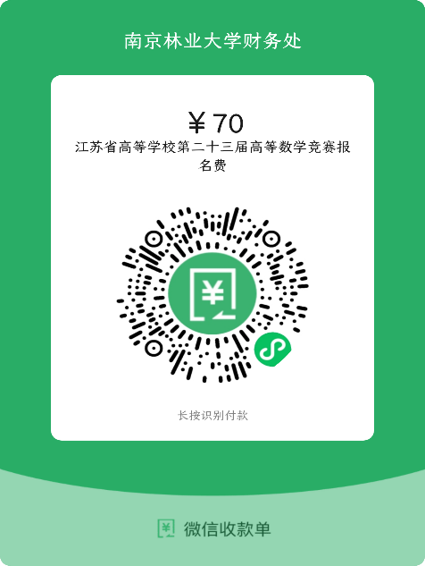(2) 交纳报名费。每人支付70元报名费,由学校财务处统一代收。请扫码上方“支付二维码”,并按提示支付。